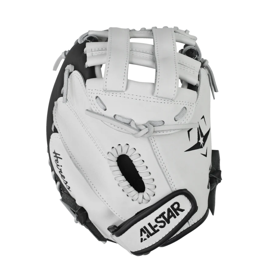 The Heiress™ series is recommended for fastpitch catchers at the travel ball level requiring more lasting durability from their glove. This mitt is built with durable steerhide leather, premium lacing, a profiled wide pocket, an adjustable wrist closure, and a padded index finger pass through