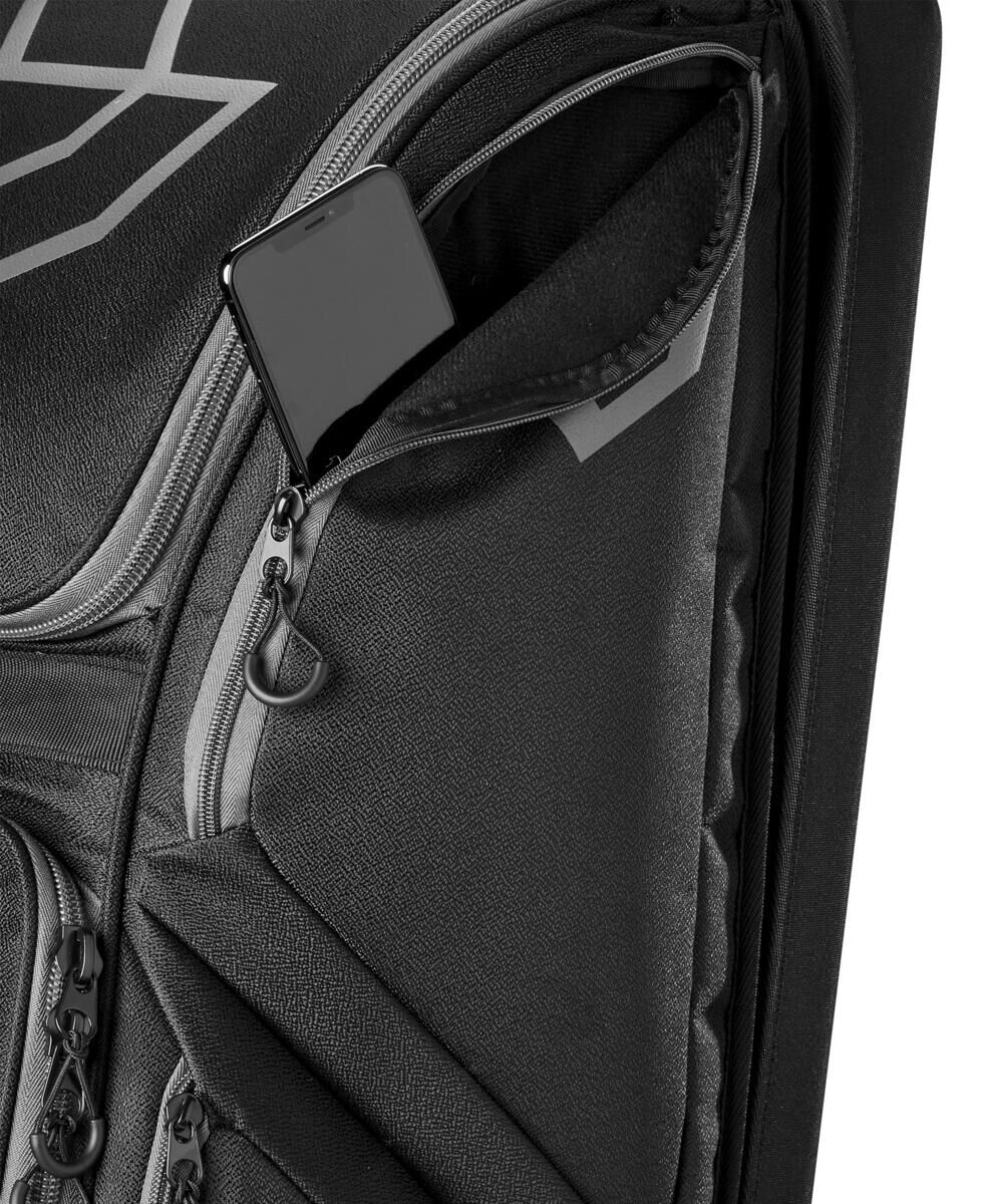 An integrated fence hook lets you hang your bag from the dugout fence. Keeps your bag off the ground and provides easy access to your gear.
