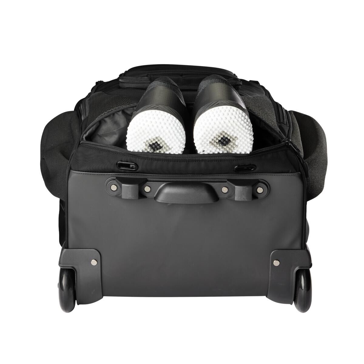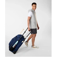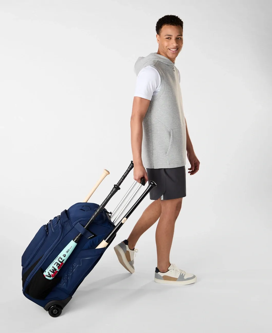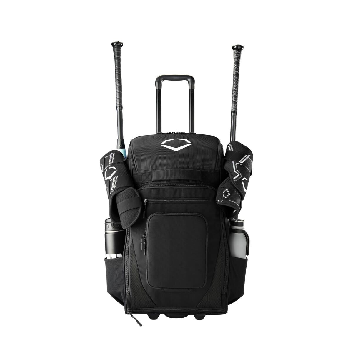 Keep all your gear close at hand on game day with the Takeover Utility Wheeled Bag, an easy-to-transport roller bag with space for all your gear and up to four bats. The comfortable telescopic handle and durable inline wheels make it easy to get from the car to the field, and the 26”x15”x10.5” bag has a zippered main compartment for your batting helmet, fielding glove and other essentials. A pair of side bat sleeves, along with two external water bottle pockets that double as bat sleeves, can carry your full collection of sticks.