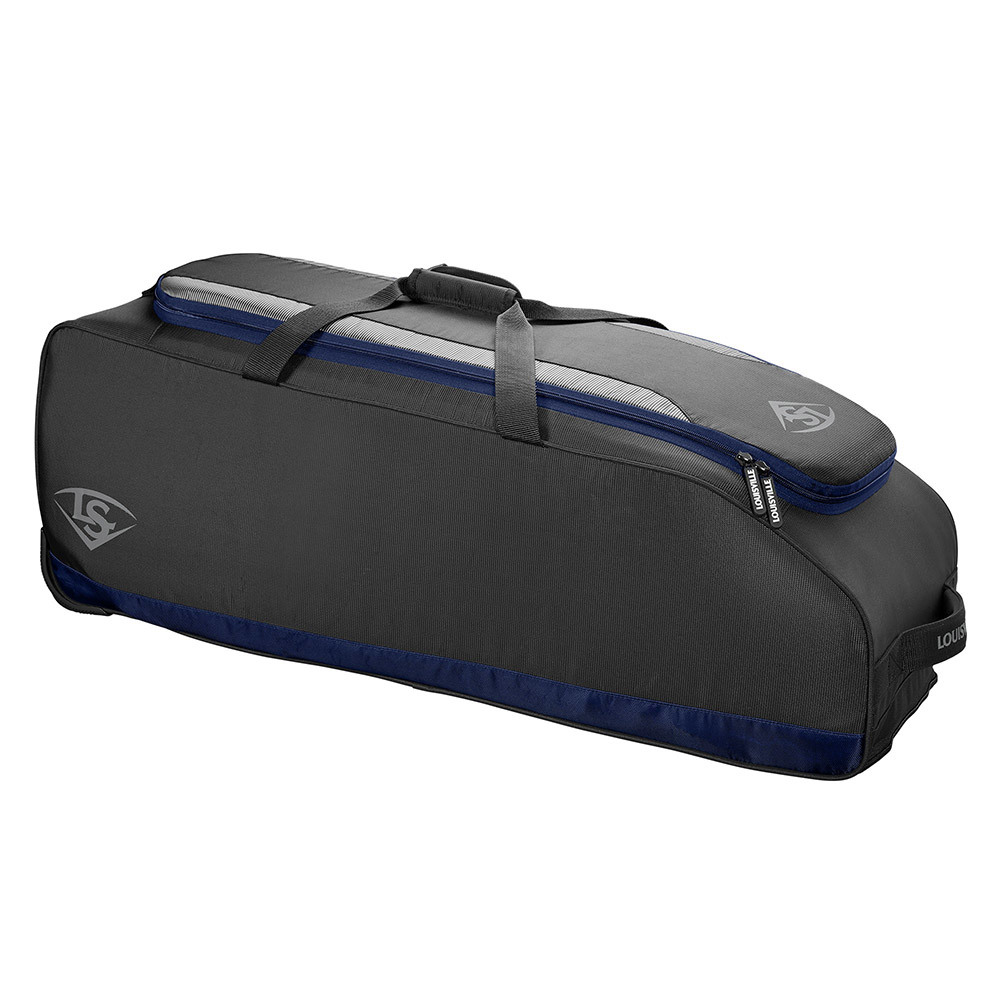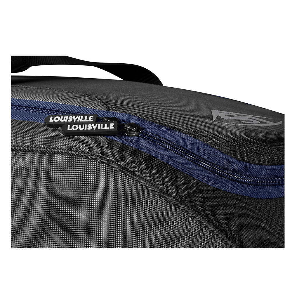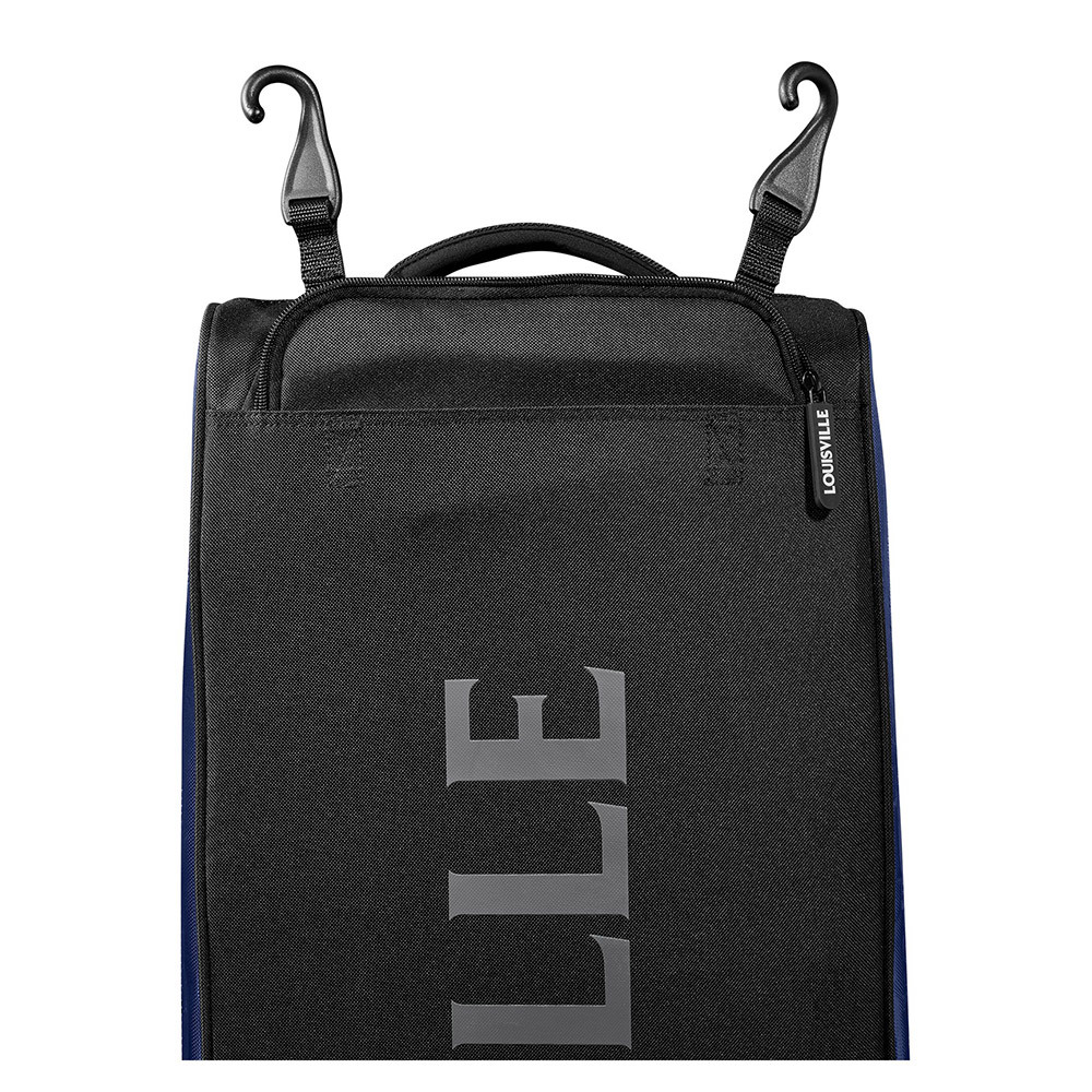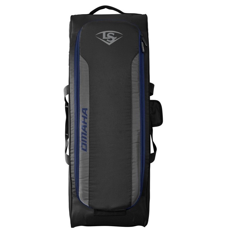Available in a variety of colors and with a removable customization panel, the Louisville Slugger Omaha Wheeled Rig is a must-have for serious ballplayers. A zippered bat compartment comfortably fits four bats and the main compartment houses a helmet, gear and your glove. An interior L Bracket helps your bag last longer with inline wheels and integrated fence hooks for easy transport and storage.
