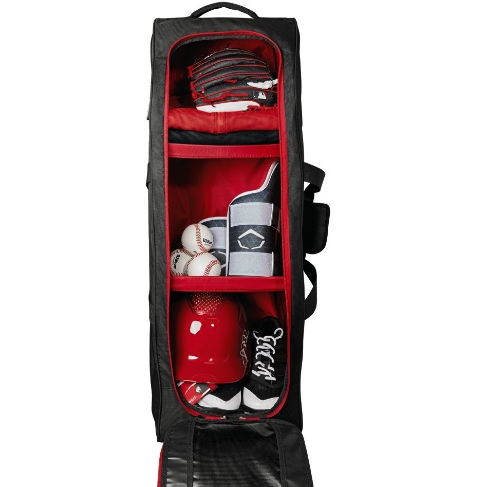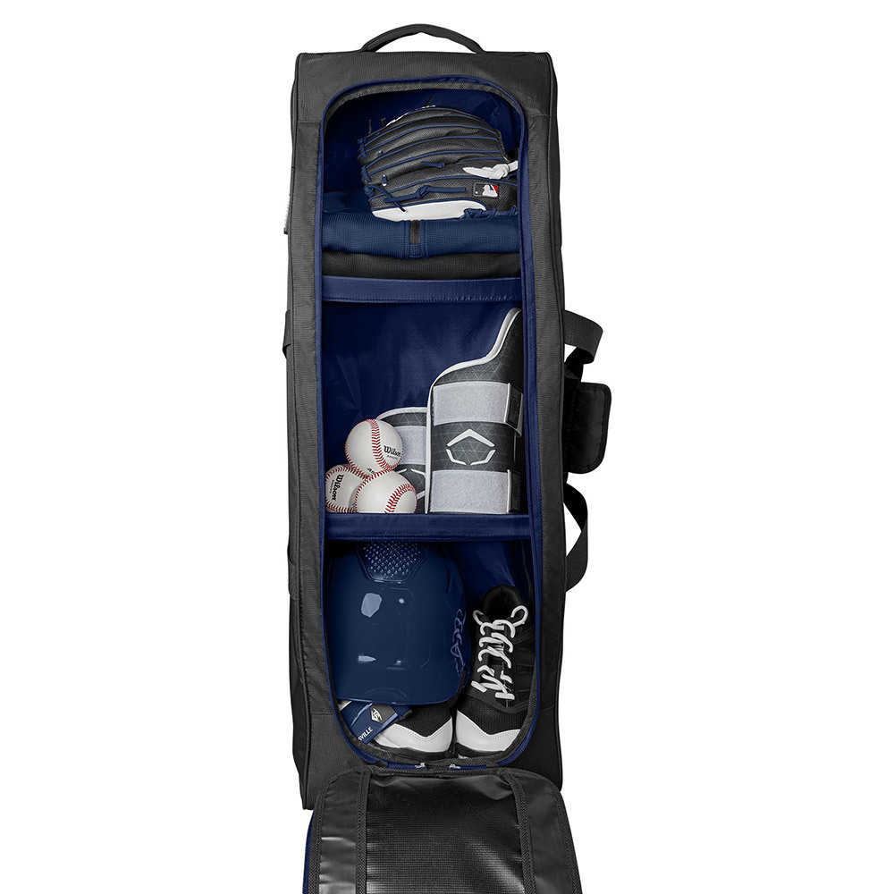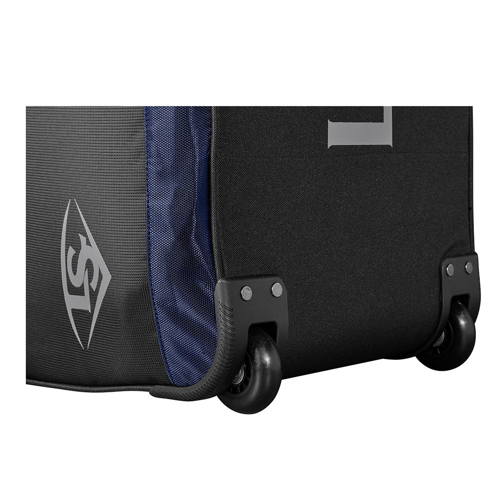 Available in a variety of colors and with a removable customization panel, the Louisville Slugger Omaha Wheeled Rig is a must-have for serious ballplayers. A zippered bat compartment comfortably fits four bats and the main compartment houses a helmet, gear and your glove. An interior L Bracket helps your bag last longer with inline wheels and integrated fence hooks for easy transport and storage.