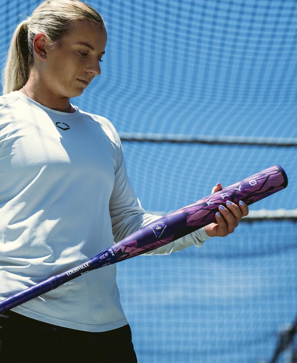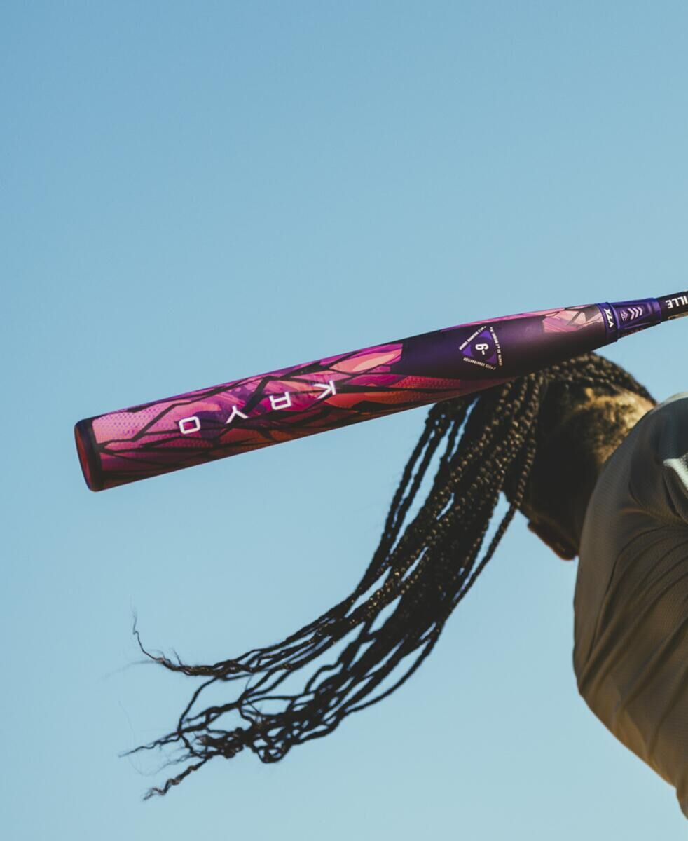 Something is brewing–and it’s bad news for the other team. The Limited Edition 2026 Louisville Slugger Kryo Thundernight (-10) fastpitch bat is engineered to make all kinds of hitters feel more confident at the plate. A crackling violet pattern comes to life across the GO-EX1 Barrel System–a composite gapped wall design and internal disc system that works with the XPND End Cap to deliver unmatched feel, performance and sound. The shorter 30” and 31” lengths feature a redesigned, longer barrel profile with an expanded sweet spot and lighter swing weight–empowering smaller, younger players to strike the ball with force.