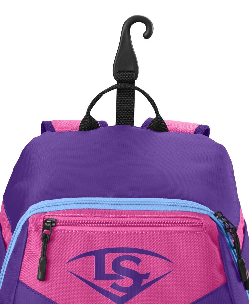 Equip your young ball player with the perfect backpack to store and haul their practice and game day gear. The Genuine V2 Stick Pack from Louisville Slugger features a generous main compartment to stash a youth helmet, fielding glove and cleats, and two mesh bat sleeves on the sides can carry bats or water bottles. Foam padded shoulder straps help young players take their game on the road, and an integrated fence hook allows for easy storage in the dugout.