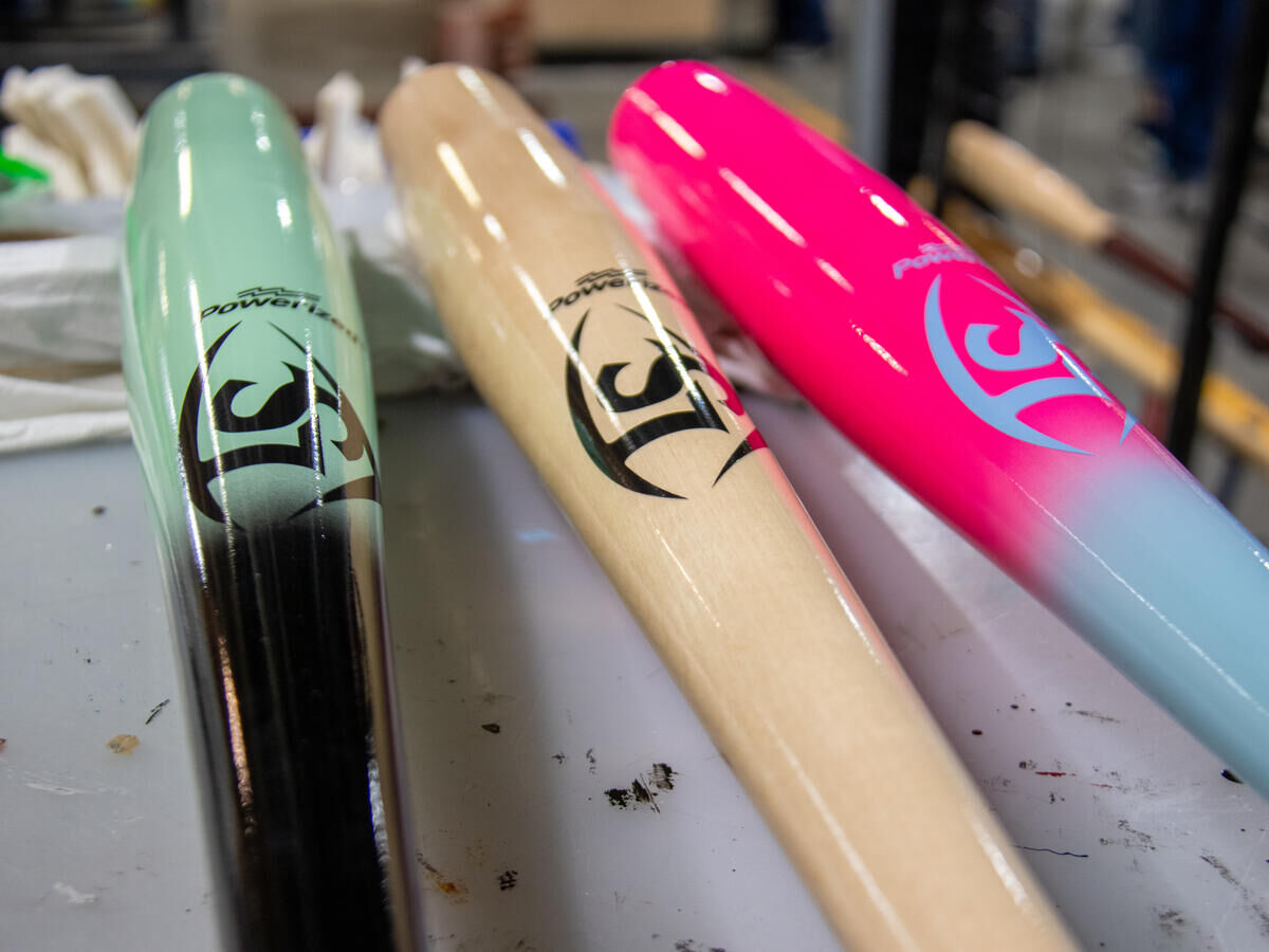 An enhanced resin material, paired with an ultraviolet light finishing process, results in a bat 30% harder than previous Louisville Slugger Prime wood bats with mirror-like appearance on gloss models