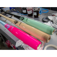 The Pro Prime Maple TPD1 Torpedo-Shaped Baseball Bat is engineered to help players maximize performance and hit more pitches on the sweet spot. This bat is reshaped to shift mass from the end of the barrel toward the center brand, adding more weight to the sweet spot and helping players consistently barrel up the ball with more power. This pink and sky blue maple bat is pro hardened using steel rods to compress the wood and create a harder, denser surface along the length of the barrel. The Pro Prime TPD1 features a slight handle taper for improved comfort, and its UV light treated Pro Series Finish creates a hard, high-gloss topcoat.