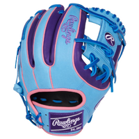 Add some pop to your game with this 11.5-inch Rawlings Heart of the Hide Colorsync infield glove! Featuring a unique blend of colors to give you the right amount of pop while on the diamond. Its columbia blue leather and purple leather trim cohesively blends with its pink accents and blue laces, making it a dazzler no matter the play.