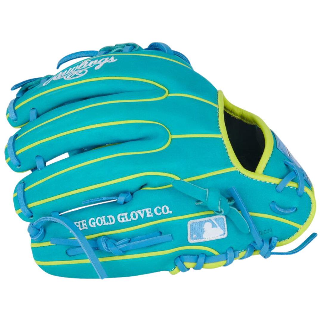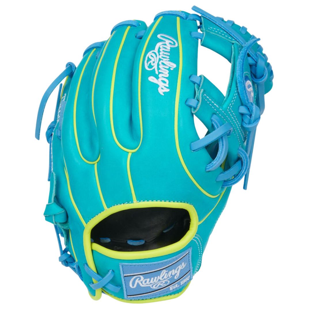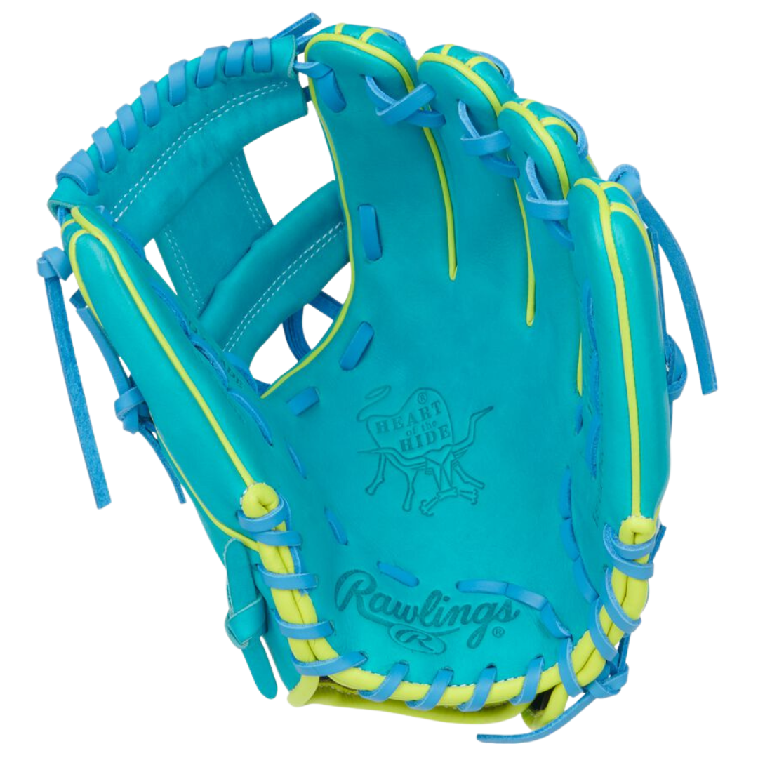 Bring game-ready flair and precision to the diamond with the Rawlings Heart of the Hide 11.5-Inch Infield Glove. Designed with a stunning Teal and Yellow colorway, this glove combines elite performance with head-turning style.