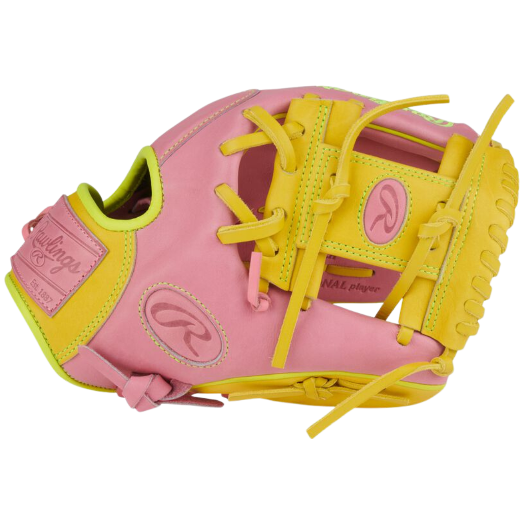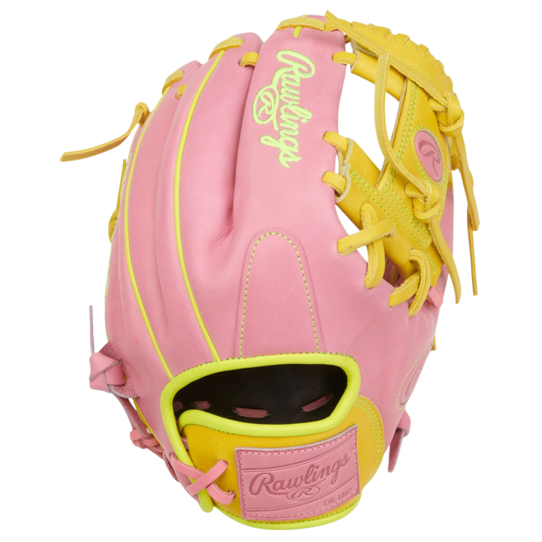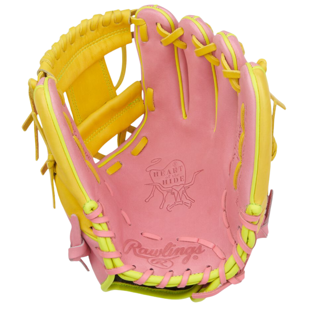 Level up your infield game with a splash of personality in the Rawlings Heart of the Hide 11.5-Inch Infield Glove. Featuring a vibrant Pink and Yellow colorway, this glove makes a bold statement while delivering the high-end performance expected from Rawlings' iconic Heart of the Hide line.