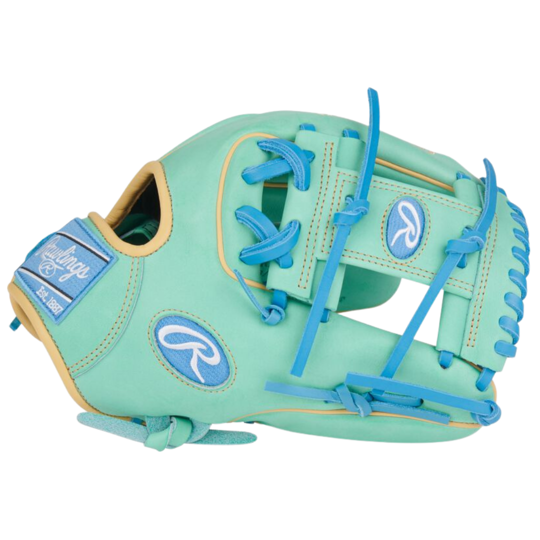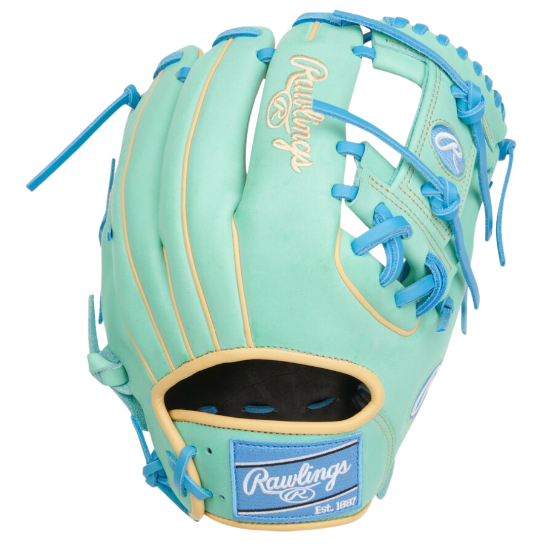 Bring smooth hands and standout flair to the field with the Rawlings Heart of the Hide 11.75-Inch Infield Glove. Featuring the 217 pattern trusted by elite infielders, this glove delivers the consistency and control you need to own every play — all wrapped in a vibrant Mint and Columbia Blue colorway.