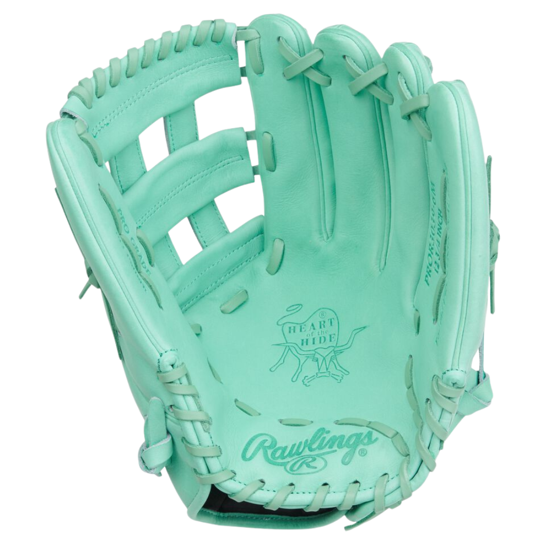 Make a statement in the outfield with the Rawlings Heart of the Hide 12.75-Inch Outfield Glove, crafted for high-level performance and standout style. With its vibrant Mint colorway, this glove turns heads while helping you lock down your territory.