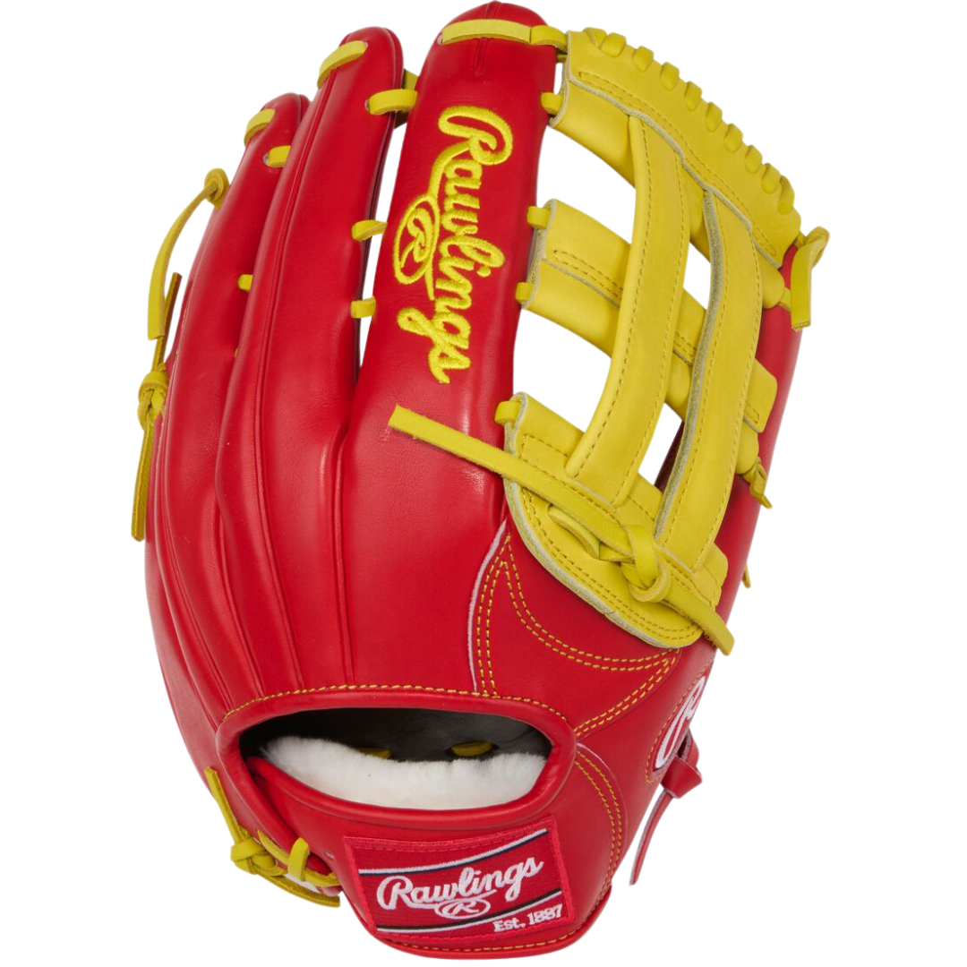 Take the field in style with the Rawlings 12.75-Inch Pro Preferred Outfield Glove, built for bold defenders who demand pro-level performance. Designed in a vibrant Scarlet and Yellow colorway, this glove makes a loud statement — and backs it up with flawless function.