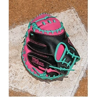Young catchers ready to run the game, this one’s for you. Handcrafted in the Wilson Pro Stock® Factory, the A1000® CM33 is a 33” catcher’s mitt made with full grain leather that’s game-ready fast, forms to the player’s hand over time and is durable enough to handle countless innings behind the dish. Thin toe pads and a Half Moon Web design allow young players to control the strike zone and smother pitches in the dirt with ease, comfort and style.