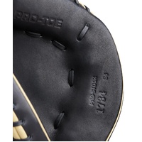 The 2026 A2000® Classics Series 1734 is made for catchers who like a jet-black classic look. This 34” catcher’s mitt has thinner heel and toe pads to help catchers keep their thumb under the ball, plus extended finger guards to maximize shock absorption when receiving heater after heater. Black Pro Stock® Leather and Blonde trim combine for bold but subtle style that lets everyone know you mean business behind the plate.