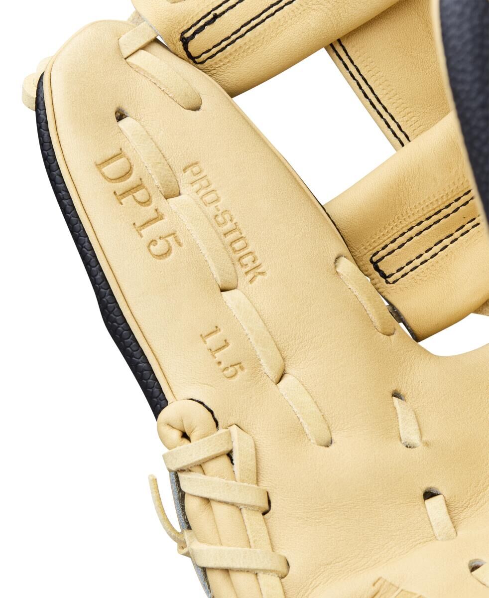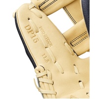 The 2026 A2000 Classics DP15SS brings an old-school Black and Blonde look to modern performance. This 11.5” infield glove is headlined by Pedroia Fit Technology, which uses the narrower wrist opening and shorter finger stalls preferred by MVP second baseman Dustin Pedroia. SuperSkin™ offers the same durability and performance as leather at half the weight, letting middle infielders maintain fast hands and use the shallow-pocketed H-Web construction to make lightning quick transfers to nail would-be base runners.